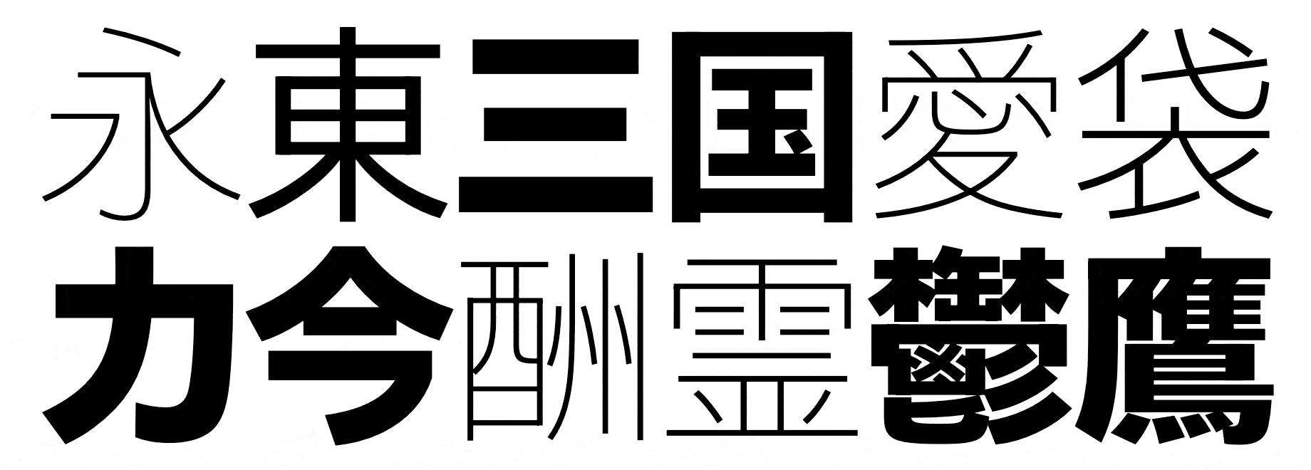 Thin, Thin Italic, Light, Light Italic, Regular, Regular Italic, Medium, Medium Italic, Bold, Bold Italic, Black, Black Italic, Heavy, Heavy Italic - Opentype Features