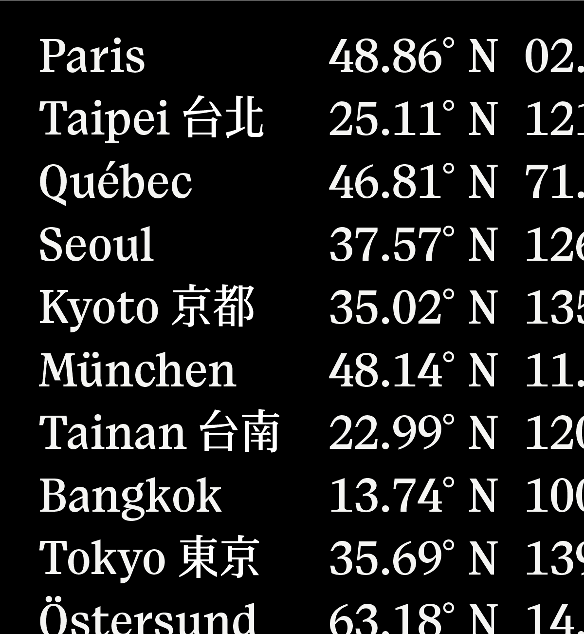 Our fonts only support Latin script based languages. The languages listed below is base on the unicode coverage, yet it doesn’t ensure the local glyph variations. Feel free to reach out to us for inquiries or to request specific localizations.